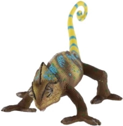 Descoperă lumea fascinantă a reptilelor cu modelul detaliat al cameleonului yemenit. Acest cameleon din plastic se remarcă prin textura realistă a pielii, ochii expresivi și coada spiralată tipică. Coloritul autentic, cu accente maro, albastre și galbene, conferă figurinei un realism ce atrage atât copiii, cât și adulții.