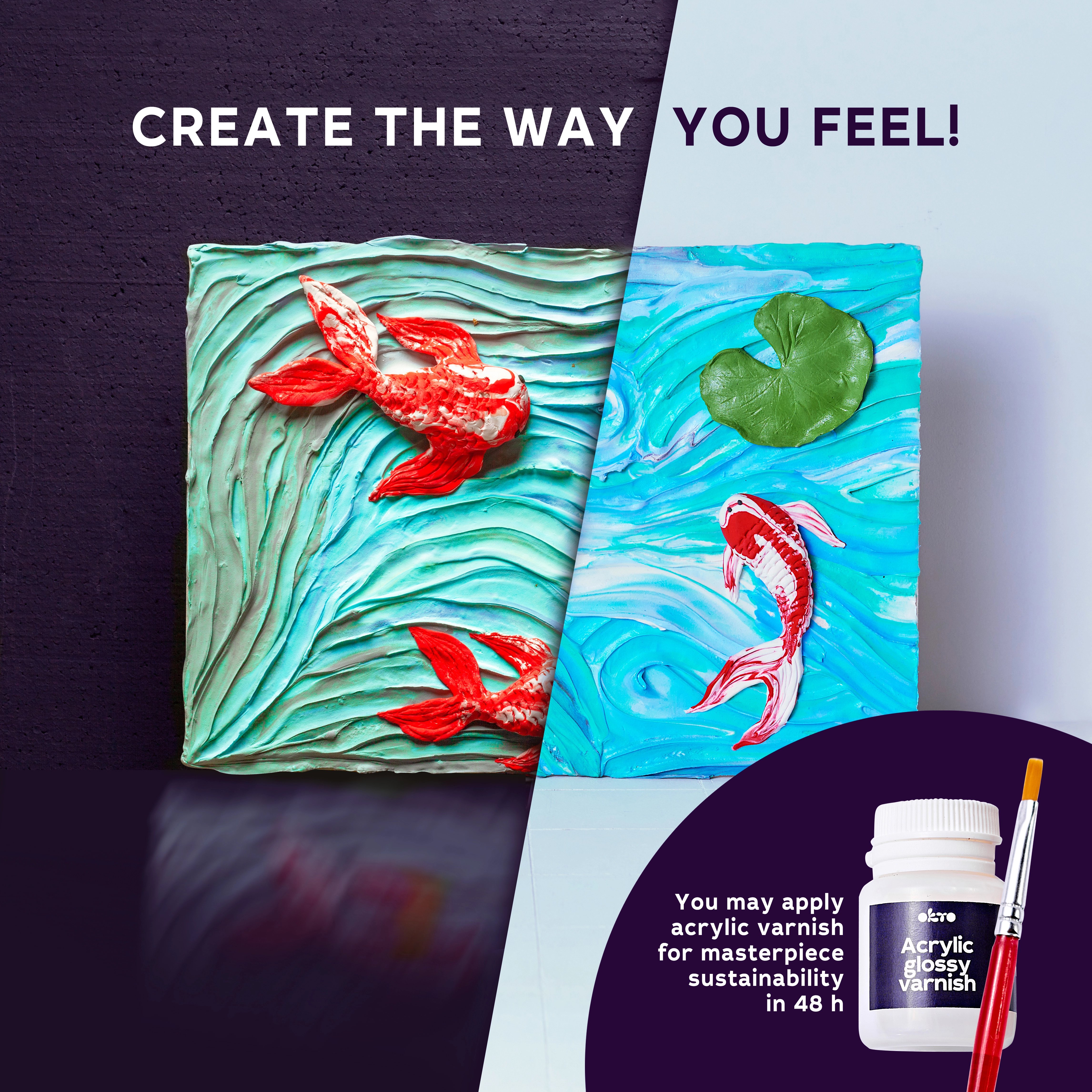 Descoperiți plăcerea creativă cu setul pentru realizarea unui tablou Crapi koi, dimensiune 30 × 40 cm. Conține tot ce aveți nevoie pentru un start ușor – de la pânză la mase de modelaj și lac. Ideal pentru începători și avansați care doresc să creeze un tablou plastic 3D cu motiv crapi koi și să adauge interiorului un element artistic original.