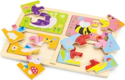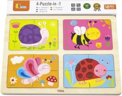 Setul conține patru puzzle-uri separate cu ilustrații colorate de animale potrivite pentru copii. Fiecare imagine este formată din patru părți, ceea ce însumează 16 piese. Puzzle-urile sunt destinate copiilor de la 18 luni și susțin motricitatea fină, gândirea logică și creativitatea.