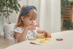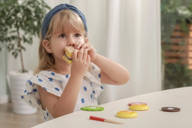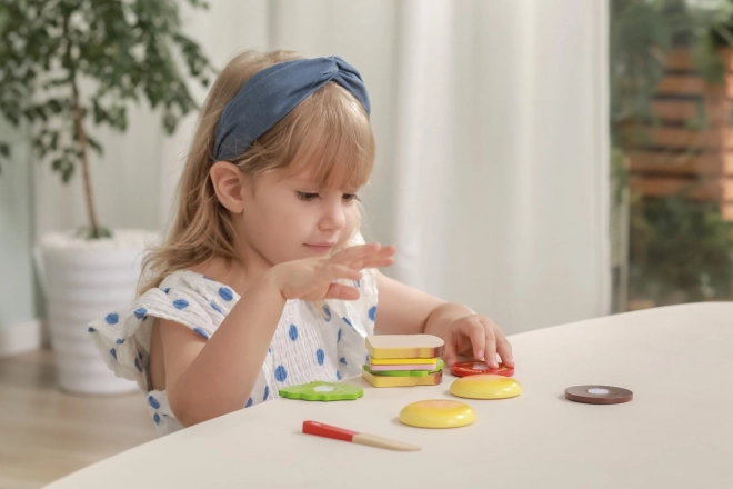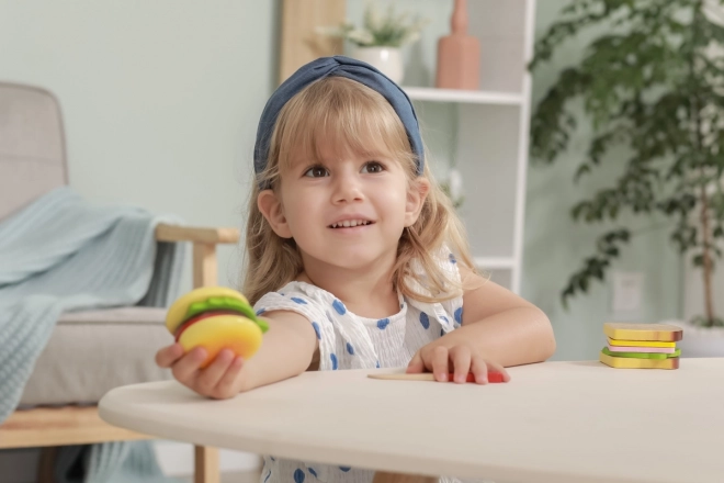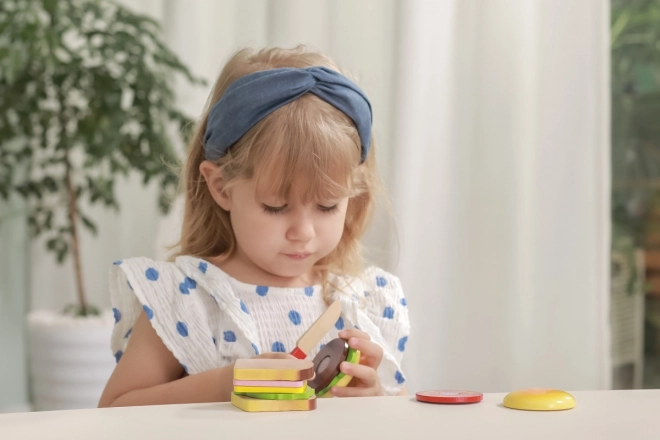 Setul încurajează jocul creativ, unde copiii pot crea diverse combinații de sandvișuri și hamburgeri, învățând despre imaginație și planificare.