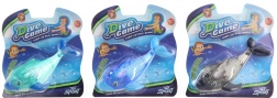Delfin acvatic vesel pentru scufundări în apă, cu dimensiunea de aproximativ 14 cm. După introducerea în apă, delfinul luminează și poate fi găsit și scos la suprafață. Funcționează cu 3 baterii tip buton AG13 (incluse în pachet). Potrivit pentru diversificarea antrenamentelor de înot și scufundări sau pentru utilizare în piscina de acasă (sub supravegherea unui adult). Dimensiunile ambalajului sunt de aproximativ 19 x 20 x 8 cm. Vârsta 3+.