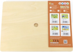 Puzzle-ul din lemn este bogat decorat cu motive marine care stimulează imaginația copiilor și le atrag atenția.