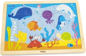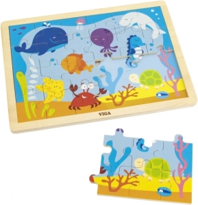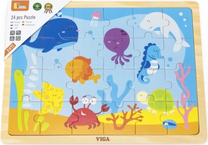 Puzzle vesel din lemn cu tematica lumii subacvatice este o distracție ideală pentru copii. Asamblarea celor 24 de piese ajută la dezvoltarea abilităților cognitive și motorii.