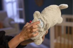 Iepurașul își leagănă ritmic căpșorul și imită căscatul, ajutând bebelușul să se relaxeze și să adoarmă mai repede.