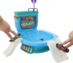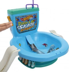 HOT WHEELS Skate Flush & Go este un skatepark distractiv pentru degete care transformă „vasul de toaletă” într-un bowl perfect pentru trucuri. Prin apăsarea pârghiei lansezi placa direct în vârtejul cursei și continui cu sărituri de pe rampe, grind pe balustradă și drop-uri de pe rampa din spate. Ideal pentru antrenarea abilităților și scenarii de joacă nesfârșite.