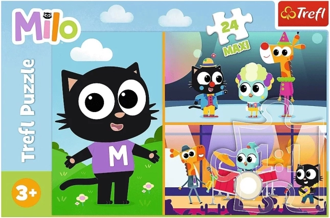 Acest puzzle pentru copii, cu motivul îndrăgitului pisoiaș Milo, este o alegere excelentă pentru primul puzzle. Cele 24 de piese extra mari sunt ușor de manevrat chiar și de către cei mai mici, dezvoltând motricitatea fină, răbdarea și gândirea logică. După asamblare, rezultă o imagine mare și colorată de 60 × 40 cm, pe care copiii o vor îndrăgi.