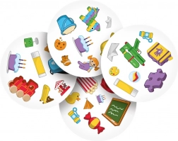 Dobble Kids este un joc care antrenează spiritul de observație și viteza de reacție, pe deplin adaptat nevoilor celor mai mici copii. Setul conține 55 de cărți cu simboluri reprezentând obiecte și jucării cu care copiii se joacă zilnic. Ursuleț, rucsac, minge, bicicletă, păpușă – imagini simple care se numesc ușor, astfel încât îi putem invita la joc pe copii încă de la 4 ani.