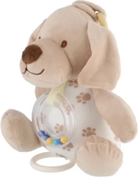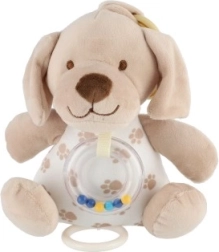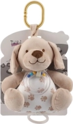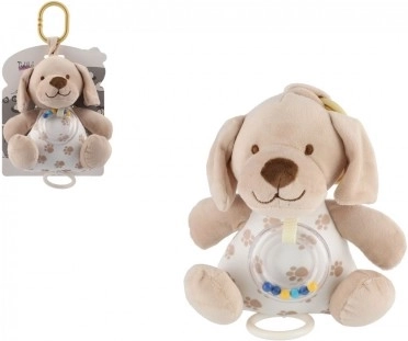Cutia muzicală de la TULILO este realizată din pluș moale și plastic, ceea ce asigură siguranță și confort în timpul jocului pentru cei mici. Datorită culorii bej a cățelului, este universală și se potrivește în orice interior pentru copii.