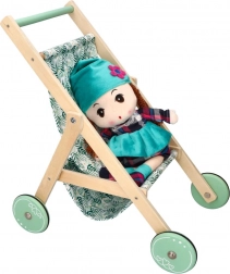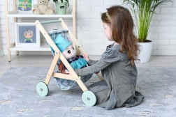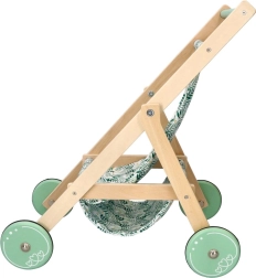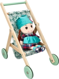 Căruciorul ușor din lemn pentru păpuși îmbină materialul natural atemporal cu un scăunel textil jucăuș, în design cu frunze. Mânerele netede și roțile silențioase asigură împingerea confortabilă prin casă, în timp ce construcția durabilă oferă siguranță și stabilitate în timpul jocului.