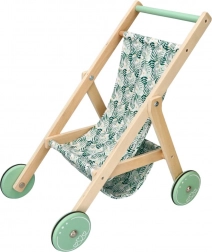 Cărucior stilat pentru păpuși din lemn natural, cu scăunel textil cu model de frunze, ideal pentru micii îngrijitori. Este ușor, stabil și susține excelent imaginația și motricitatea fină. Datorită dimensiunilor compacte, se potrivește în orice cameră de copii.