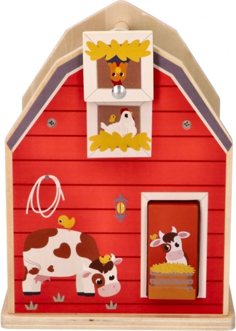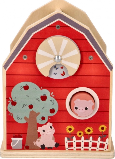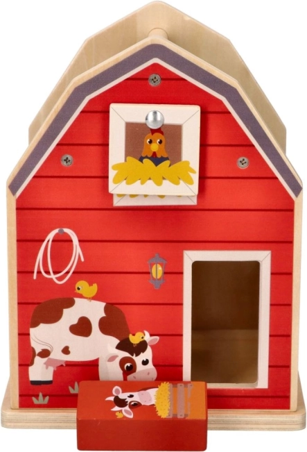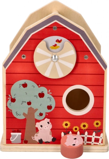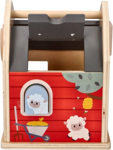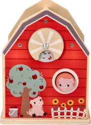 Acest box include cinci forme colorate care reprezintă diverse animale de fermă, precum oaia, purcelușul și vaca, pe care copiii le pot introduce în orificiile corespunzătoare de pe pereții fermei. Formele sunt suficient de mari pentru a fi folosite în joaca independentă.