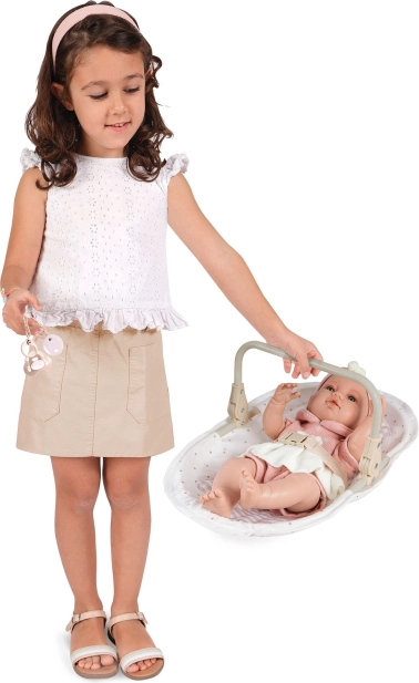 Datorită șezutului detașabil și reversibil, produsul poate fi utilizat ca scăunel de masă cu tăviță, leagăn liniștitor sau port-bebe separat. Construcția metalică robustă se îmbină cu elemente ușoare din plastic și cu o husă textilă plăcută pentru confortul păpușii și întreținere ușoară.
