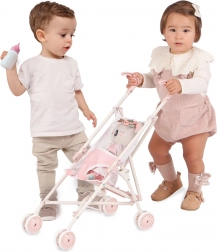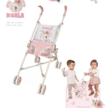 Acest cărucior pliabil pentru păpuși, cu un design delicat și motivul KOALA adormită, combină culoarea albă cu imprimeu floral și elemente roz somon. Datorită greutății reduse și manipulării ușoare, este ideal pentru copiii mai mici și pentru joaca de zi cu zi.