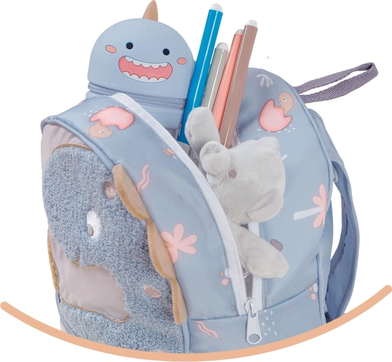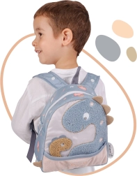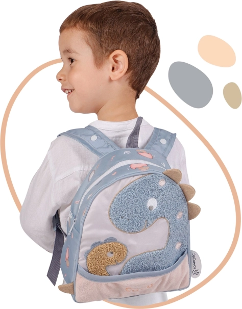 Datorită bretelelor de umăr ajustabile, rucsacul va „crește” odată cu copilul, iar cele două buzunare cu fermoar păstrează totul ordonat și la locul lui. Materialul din poliester poate fi spălat manual în apă rece, astfel încât motivul cu dinozaur să rămână mult timp ca nou.