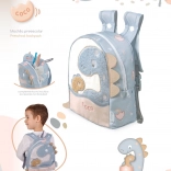 Imaginea dominantă cu mama dinozaur și puiul ei pe un fundal albastru pal transformă rucsacul în partenerul preferat atât la grădiniță, cât și în excursii.