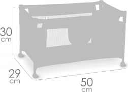 Pătuțul se pliază în câteva clipe într-o formă compactă de 37 × 10 × 10 cm – perfect pentru excursii și pentru a fi mutat prin locuință.