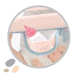 Pătuțul se pliază rapid într-un pachet mic, astfel încât nu ocupă spațiu, iar copiii îl pot lua cu ușurință oriunde. Buzunarul lateral practic păstrează la îndemână biberonul, suzeta sau alte accesorii esențiale pentru păpușă.
