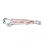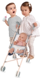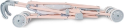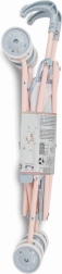 Cadrul metalic robust și țesătura rezistentă în nuanță gri-albăstrui, cu detalii nisipii și roz, asigură durată de viață îndelungată și utilizare sigură. Practicul sistem de siguranță împotriva prinderii degetelor protejează copiii în timpul plierii. Căruciorul este potrivit pentru păpuși de diverse dimensiuni, iar datorită centurii în trei puncte păpușa rămâne mereu la locul ei.