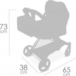 Construcția practică pliabilă economisește spațiu acasă și în mașină. Roțile frontale pivotante ușurează manevrarea, centura în 3 puncte fixează în siguranță păpușa, iar coșul inferior oferă spațiu suplimentar de depozitare. Include un rucsac modern cu buzunar transparent pentru mărunțișuri și husă pentru landou cu fermoar.