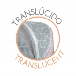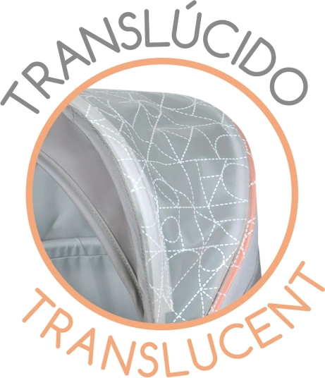 Combinația de țesături de calitate și PVC imprimat creează efectul de suprafețe vitrate. Accentele cuprate oferă căruciorului un aspect elegant, urban.