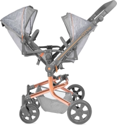 Descoperă căruciorul excepțional pentru păpuși din colecția CITY X 2024, care copiază fidel cărucioarele moderne pentru copii. Variantele în gri-argintiu cu elemente cuprate și PVC decorativ cu imprimeu creează efectul de suprafețe „de sticlă”, datorită căruia se evidențiază în orice cameră de copil. Construcția ușoară, dar stabilă, permite pliere și transport facil cu mașina.