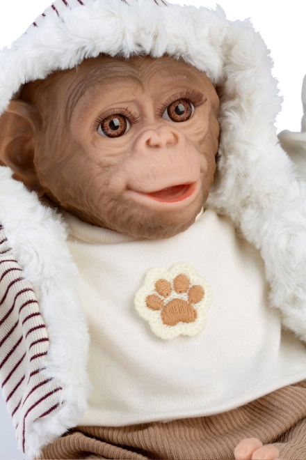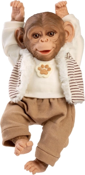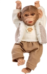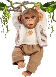 Această maimuțică-bebeluș realizată realist aduce copiilor multă bucurie și imaginație în joacă. Datorită corpului textil moale este plăcută la alintat, în timp ce capul și membrele din vinil, cu detalii frumoase, arată ca vii. Maimuțica este articulată – o puteți așeza sau atârna de mâini ori picioare, devenind o companionă preferată și o decorațiune pentru camera copilului.