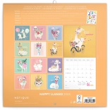 Calendar de notițe pentru anul 2025 cu ilustrații ale lamelor în diverse situații, oferă oportunități largi de organizare și distracție.