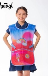 Descoperiți o protecție fiabilă a hainelor pentru micii creatori. Șorțul pentru copii BAAGL, cu motiv curcubeu în variantă roșie, este ideal pentru școală și acasă – pentru educație plastică, activități practice, copt și meșterit. Designul jucăuș îi încântă pe copii și îi invită la creație.