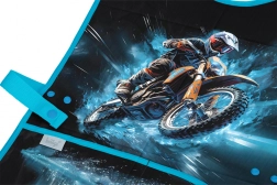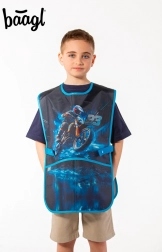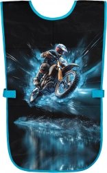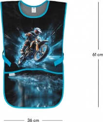 Motivul dinamic cu motocicletă îi motivează pe copii să creeze și conferă șorțului un aspect original pe care micii piloți îl vor îndrăgi.
