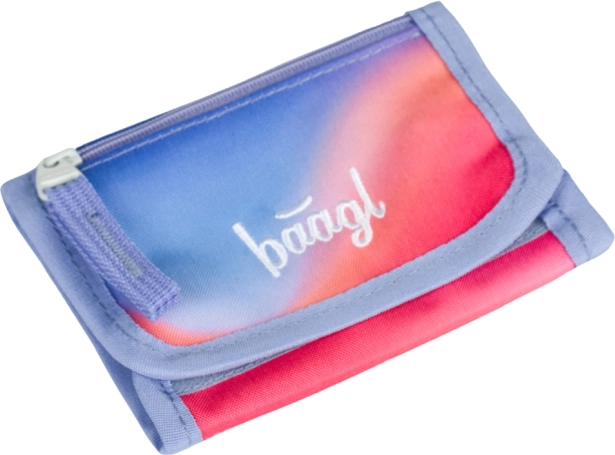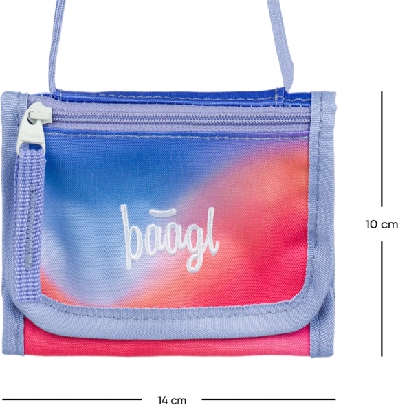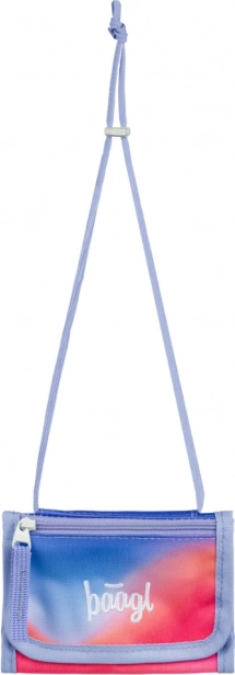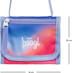 Portofelul Baagl practic și stilat pentru purtare la gât, în design curcubeu roșu, este ideal pentru copii și adolescenți. Oferă material rezistent și durabil, șnur practic pentru agățare și închidere sigură cu arici, completate de un buzunărel pentru mărunțiș cu fermoar.