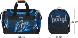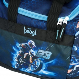 Geantă sport ușoară și practică pentru copii BAAGL cu motiv motocicletă, ideală pentru cluburi, antrenamente și ca bagaj de mână. Oferă o compartimentare principală spațioasă cu capac larg pentru împachetare ușoară, buzunar separat pentru încălțăminte, curea detașabilă și reglabilă pentru purtare pe umăr și bază întărită, impermeabilă. Fermoarele fiabile YKK asigură deschiderea lină, iar elementele reflectorizante sporesc siguranța copiilor pe înserat.