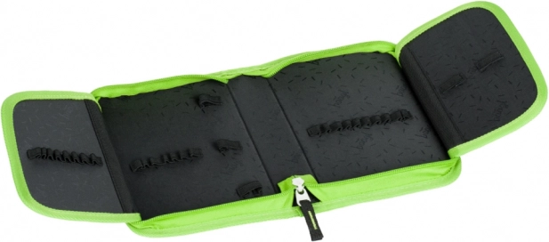 Două clapete interne cu bucle elastice și buzunare mențin creioanele, markerele și mărunțișurile bine organizate la locul lor.