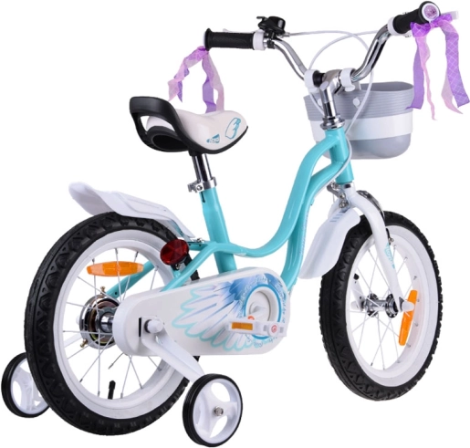 ROYALBABY Little Swan 14" este o bicicletă pentru copii fiabilă, concepută pentru primele plimbări independente. Cadrul cu urcare joasă, ghidonul ergonomic cu mânere moi și setul complet de reflectoare sporesc confortul și siguranța. Anvelopele late 2,125 și apărătoarea lanțului cu motiv stilizat de aripă oferă bicicletei siguranță și farmec.