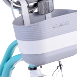 Datorită combinației de frână față pe jantă și frână spate pe tambur, copilul oprește ușor și în siguranță. Părinții vor aprecia tija de ghidare pentru ajutor la învățare și accesoriile practice din pachet, inclusiv unelte. Designul în stil retro, cu coș și panglici, va fi iubit pe loc de copii.