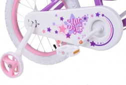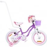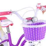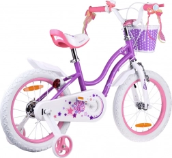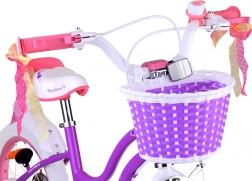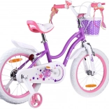 Bicicleta stilată pentru copii RoyalBaby STAR GIRL, cu roți de 14", este ideală pentru primele plimbări. Oferă stabilitate datorită roților ajutătoare, frâne de mână sigure, apărătoare completă pentru lanț și un coș practic. Șaua confortabilă cu mâner pentru părinți și ghidon reglabil pe înălțime asigură o călătorie comodă și sigură pentru copii de la 3 la 5 ani.