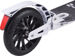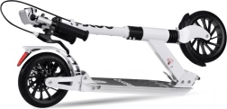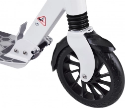 Siguranța ta este asigurată de combinația dintre frâna pe disc manuală și frâna spate prin frecare integrată în apărătoarea cu reflector. Suspensia față atenuează denivelările, astfel încât mersul este lin și confortabil chiar și pe suprafețe mai aspre. Roțile mari din PU, cu diametrul de 200 mm, rulează rapid și lin, oferind totodată stabilitate excelentă.