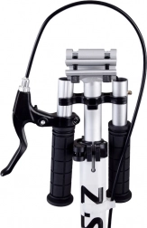 Frâna pe disc manuală, completată de frâna spate de picior cu reflector, oferă o forță de frânare puternică și controlată în orice condiții.