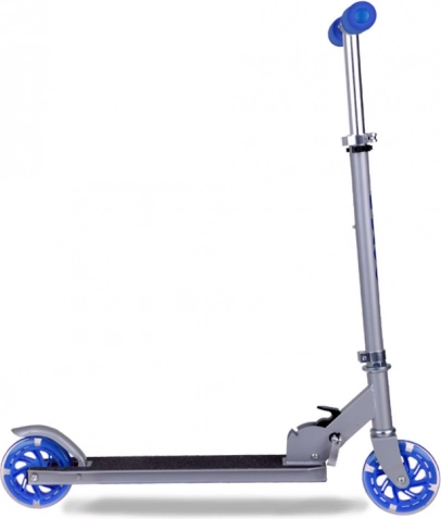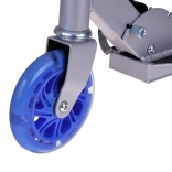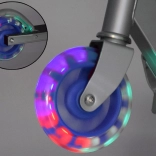 Această trotinetă pentru copii îmbină greutatea redusă, construcția pliabilă și siguranța. Roțile LED luminoase sporesc vizibilitatea și atractivitatea în mers, fără a necesita baterii – diodele sunt alimentate cu energia generată de rotația roților.