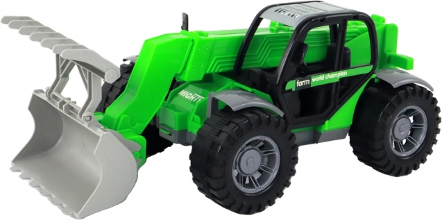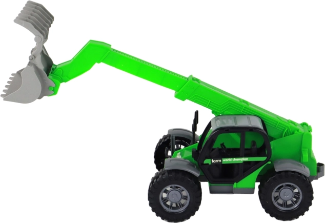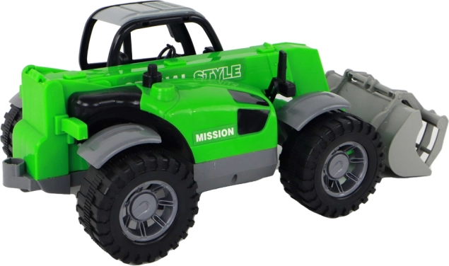 Descoperiți tractorul pentru copii, versatil, în culoare verde atrăgătoare, care imită fidel tehnica agricolă. Datorită brațului extensibil și roților mari, stabile, face față „terenului” din camera copilului și din grădină. Cabina transparentă adaugă realism jocului, iar copiii intră ușor în rolul șoferului.