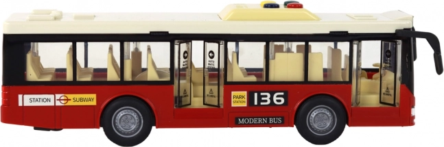 Autobuzul urban roșu pe baterii la scară 1:16 este conceput pentru micii pasionați de mijloace de transport. Acest model realist oferă funcții bogate care ridică joaca la un nou nivel. Copiii pot explora cu entuziasm lumea șoferilor de autobuz, datorită celor patru butoane funcționale de pe acoperiș care activează diverse sunete.