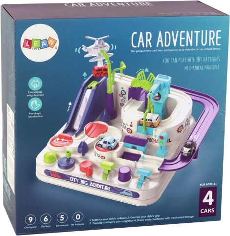 Pista interactivă cu obstacole este proiectată pentru a dezvolta abilitățile și creativitatea copiilor. Dispune de butoane și manivele rotative care permit un control dexter și fac fiecare trecere nu doar distractivă, ci și o provocare. Copiii pot conduce una dintre cele patru mașinuțe incluse în set, depăși diverse obstacole și descoperi pista fascinantă.