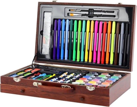 Cufundați-vă în lumea artei cu setul nostru artistic, care este cadoul ideal pentru copii și adulți. Această valiză de lemn vă va fermeca: