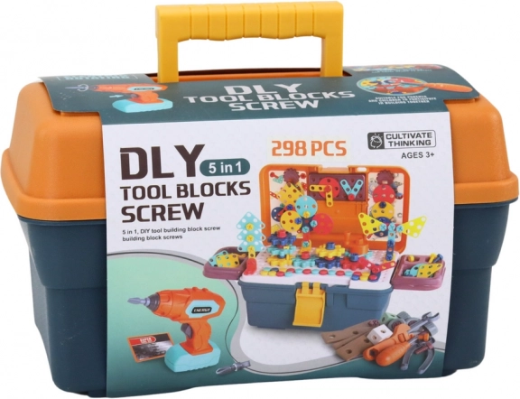 Include o bormașină cu mâner ergonomic, ușor de adaptat la mâinile mici ale copilului și o gamă largă de șuruburi și unelte care facilitează asamblarea. Astfel, copiii se pot simţi ca adevăraţi constructori.