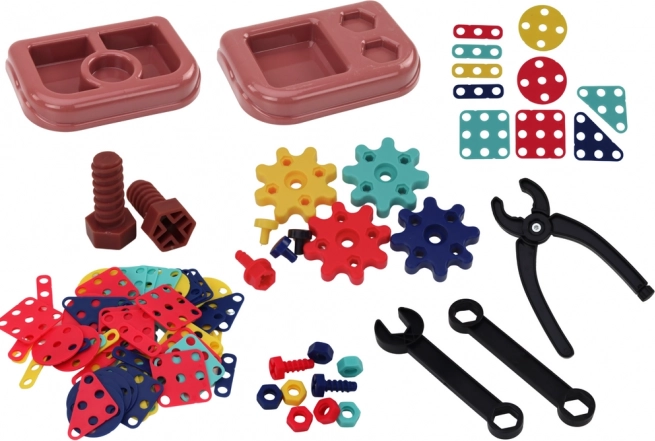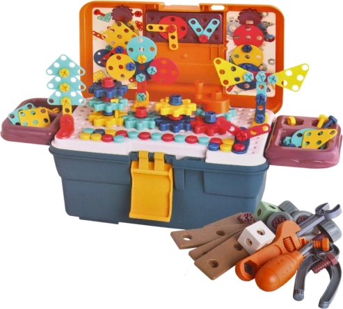 Setul de construcție include multiple unelte precum chei și clești. Ajută la dezvoltarea abilităților motorii fine.
