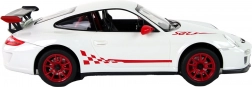 Modelul mașinii Porsche se mândrește cu vopsea albă strălucitoare, care îi conferă un aspect deosebit de luxos. Farurile contribuie la autenticitate și permit conducerea în întuneric.