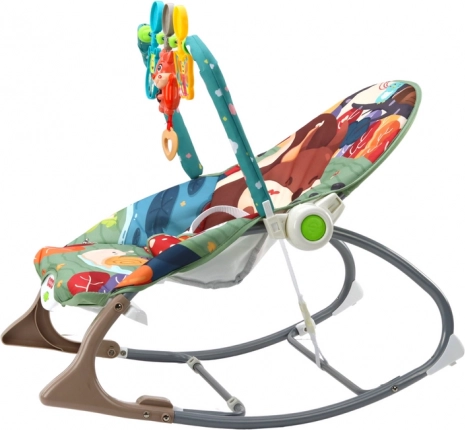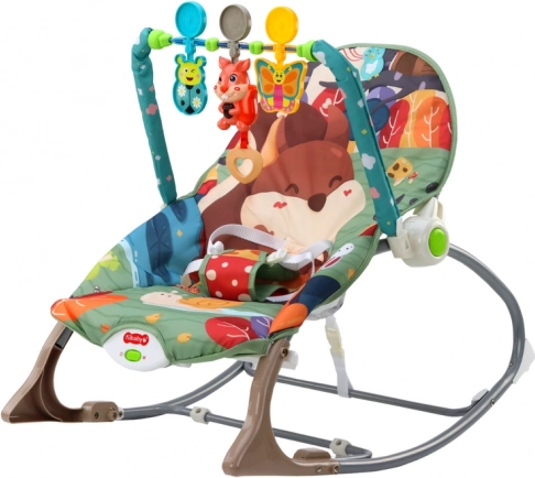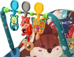 Husa balansoarului este decorată cu un motiv încântător de animale de pădure, datorită căruia fiecare moment petrecut în el este plin de aventură și bucurie. Balansoarul include o baretă arc cu jucării atârnate reprezentând animale drăguțe: vulpe, buburuză și fluture. Trăgând de inimioara atașată de vulpe se aud melodii vesele, care încurajează și mai mult interacțiunea și explorarea de către cei mici.