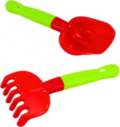 Setul include o lopățică și o greblă, care susțin activitatea fizică și motricitatea fină a copiilor în timpul jocului în nisip sau pământ.