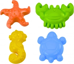 Acest set de forme este realizat din plastic solid și durabil, asigurând o durată lungă de viață și rezistență la utilizare intensă. Fiecare formă are un contur unic și culori vii, care stimulează imaginația copiilor și îi ajută să creeze povești din nisip.