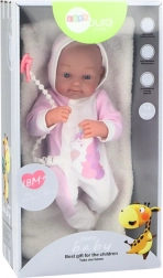 Păpușa este realizată din materiale sigure și durabile, oferind copiilor un joc sigur. Setul include, de asemenea, o suzetă pe un lanț prins de îmbrăcămintea păpușii și o păturică moale.