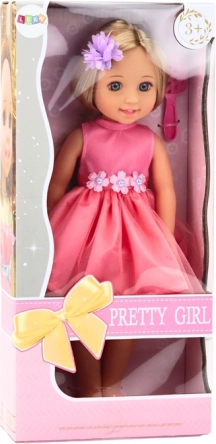 Această păpușă încântătoare are păr lung, stilizabil blond completat de o agrafă adorabilă. Setul include o perie roz pentru aranjarea părului. Păpușa poartă o frumoasă rochie roz cu detalii florale și pantofi roz asortați cu ținuta ei. Machiajul delicat și ochii și buzele pictate cu grijă adaugă eleganță și farmec.